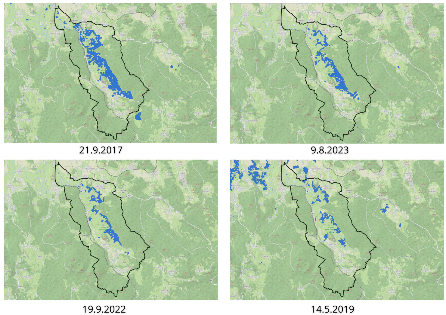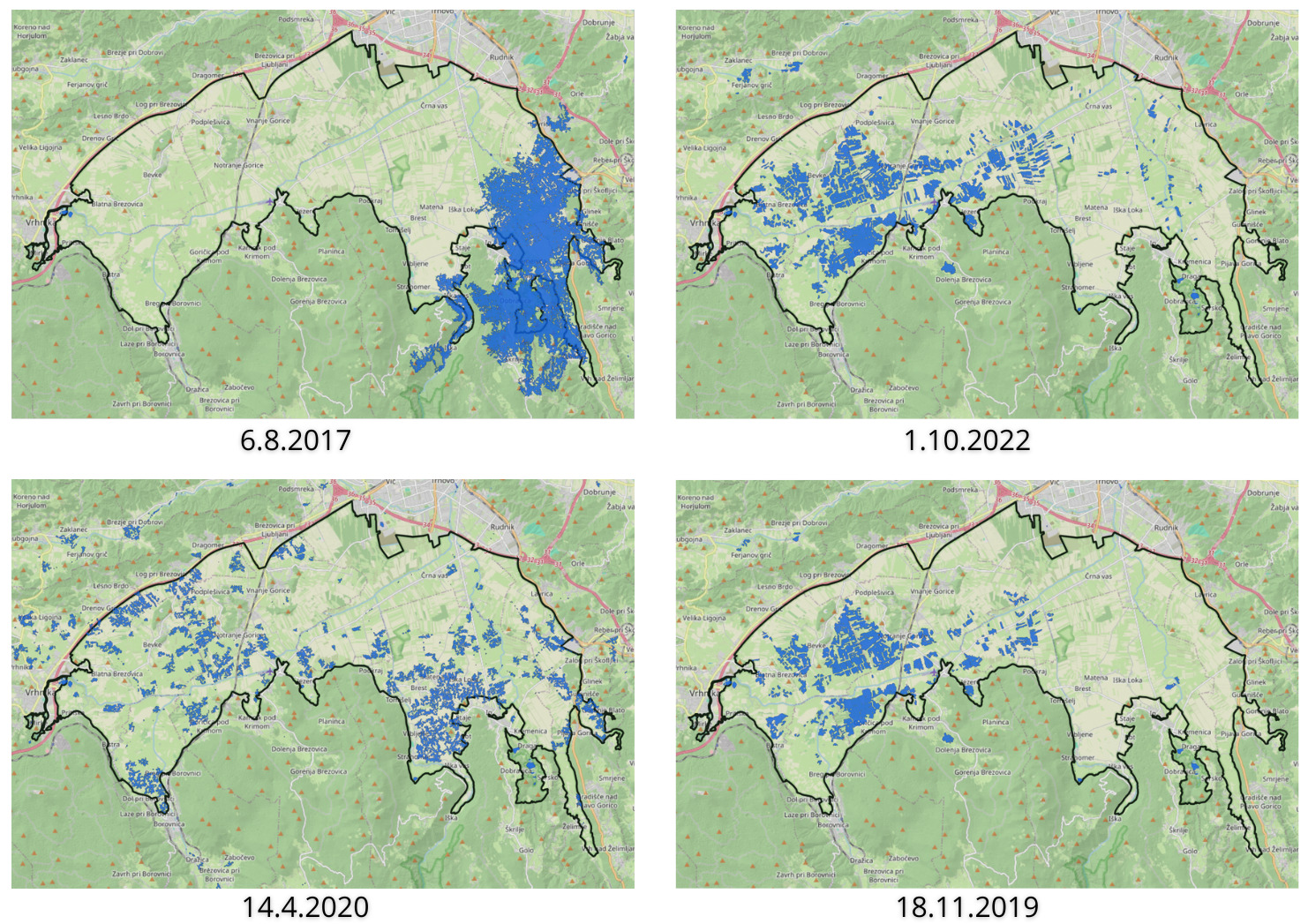 Example: Ljubljana Marsh extreme weather event on the 6th of August 2017 caused the biggest single flood event detected in the past 10 years.